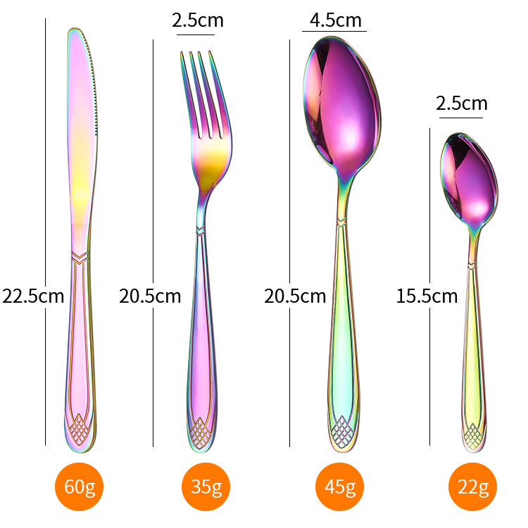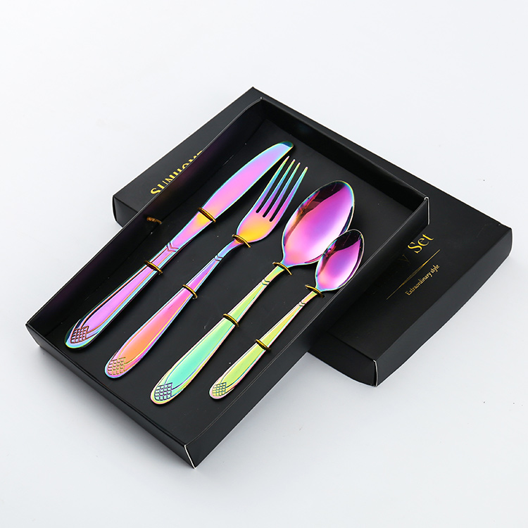 YMX-1013 镜面梨花纹4件套不锈钢幻彩色餐具礼盒套装