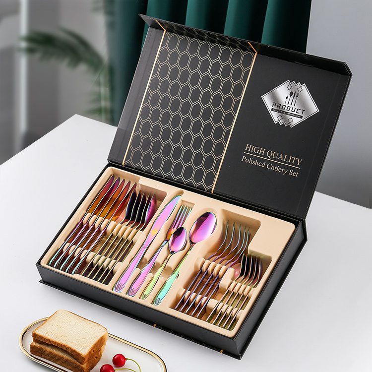 YMX-1013 镜面梨花纹24件套不锈钢幻彩色餐具礼盒套装
