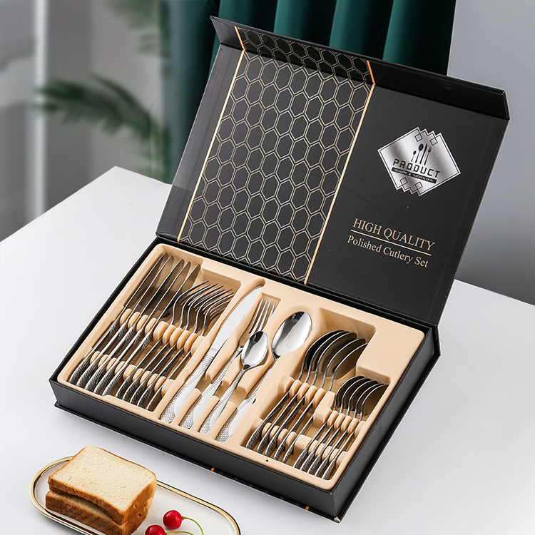 YMX-1014 镜面S花纹24件套不锈钢银色餐具礼盒套装