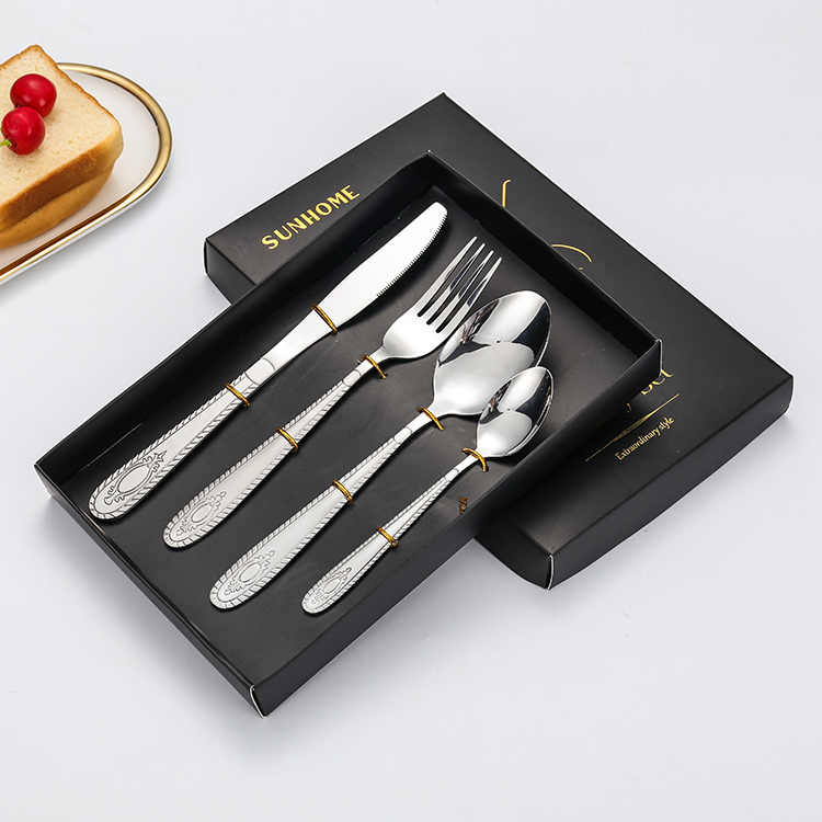 YMX-1014 镜面花纹4件套不锈钢金色餐具套装
