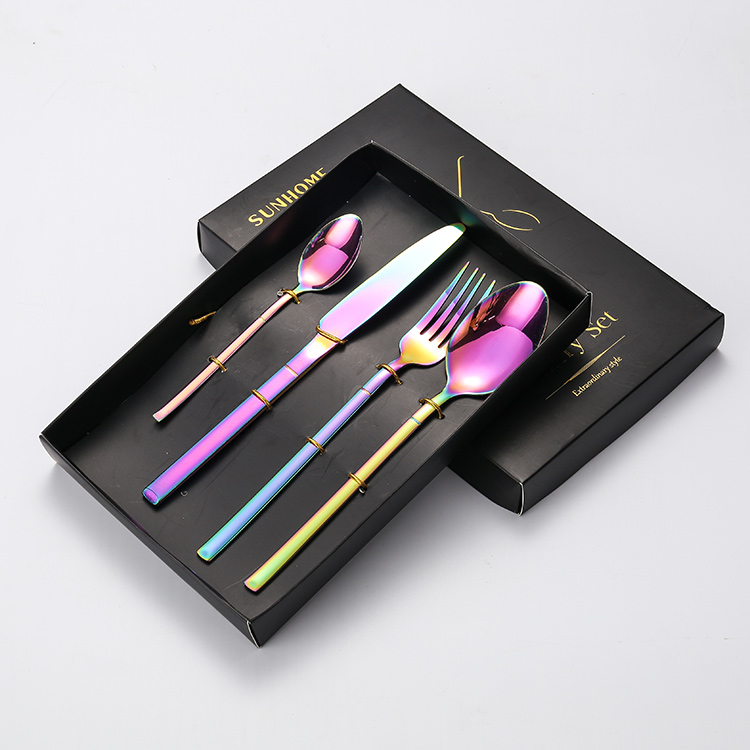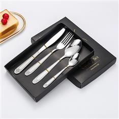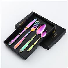 [礼盒装餐具] YMX-1013 镜面梨花纹4件套不锈钢幻彩色餐具礼盒套装