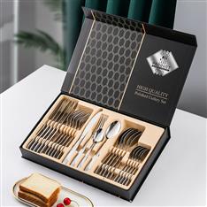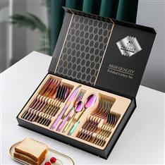 [礼盒装餐具] YMX-1013 镜面梨花纹24件套不锈钢幻彩色餐具礼盒套装