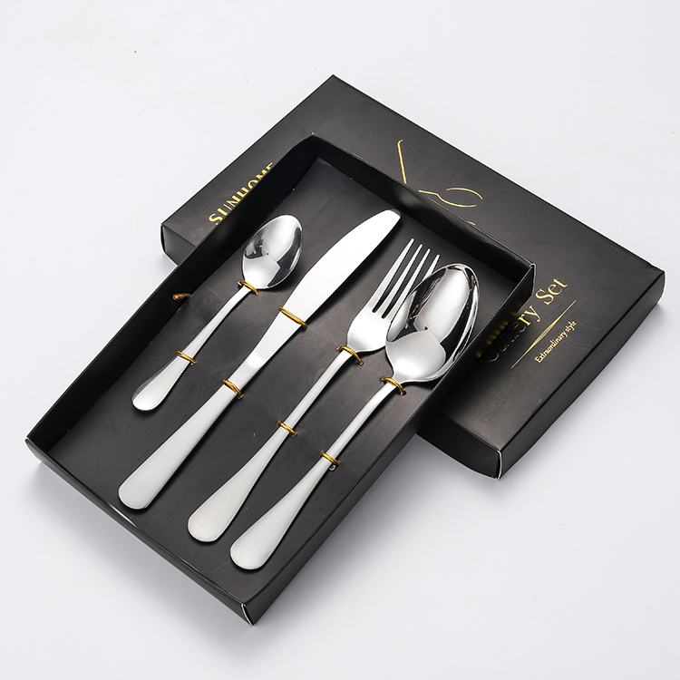 [礼盒装餐具] YMX-1014 镜面S花纹24件套不锈钢银色餐具礼盒套装