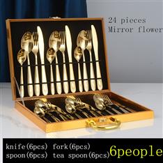 [木盒餐具] YMX-1014 镜面花纹24件套不锈钢界金色餐具木盒套装镜面