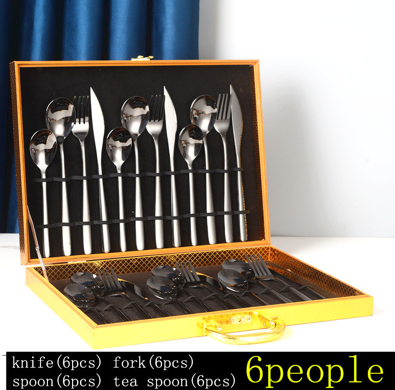 YMX-1012 韩式系列 24件套 木盒不锈钢黑色餐具套装