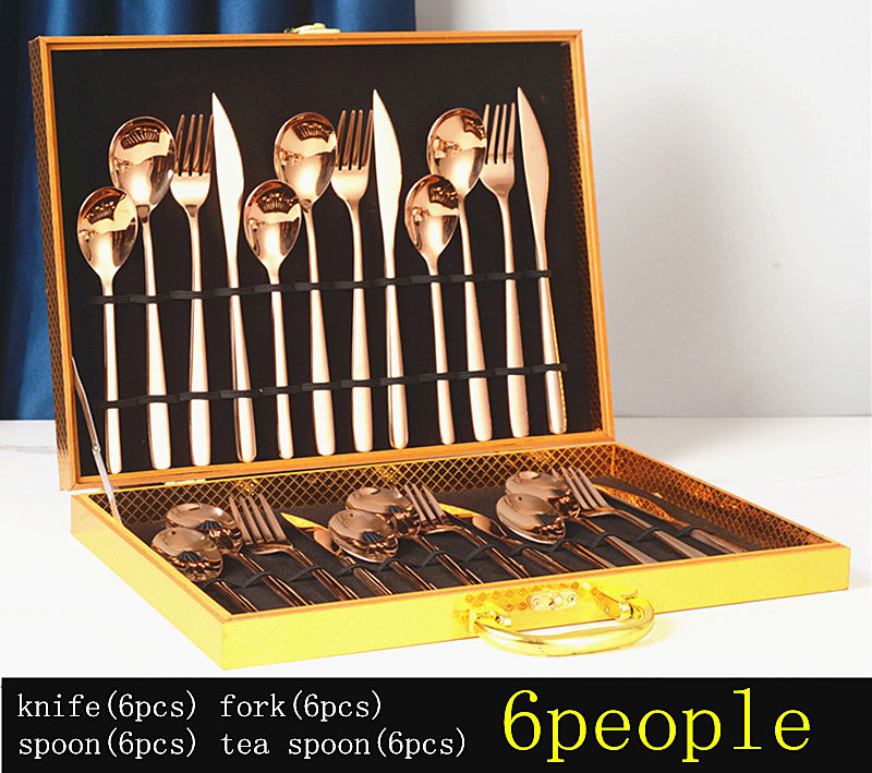 YMX-1012 韩式系列 24件套 木盒不锈钢玫瑰金色餐具套装