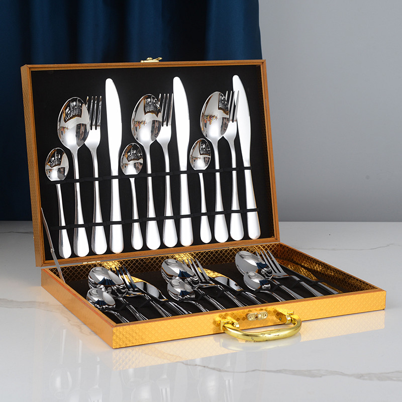 YMX-1010 24件套 木盒不锈钢银色餐具套装