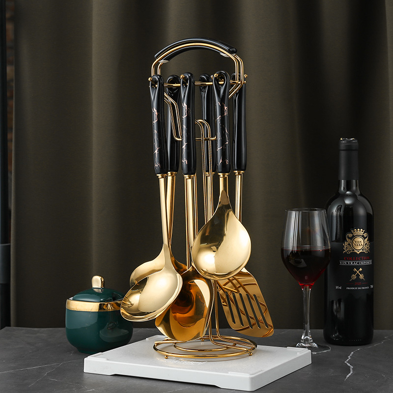 [不锈钢厨具] YMX-2010 陶瓷柄白金纹7件套