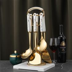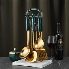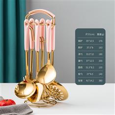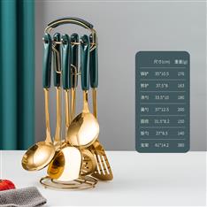 【不锈钢厨具】YMX-2010 陶瓷柄绿金色7件套