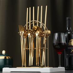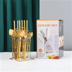 【挂架彩盒餐具】YMX-1010 挂架24件套不锈钢餐具金色