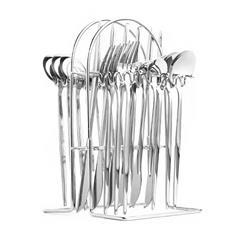 【挂架彩盒餐具】YMX-1016 葡萄牙系列挂架24件套不锈钢银色餐具套装