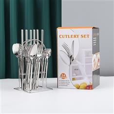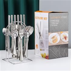 【挂架彩盒餐具】YMX-1010 挂架24件套不锈钢餐具幻银色