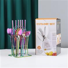 【挂架彩盒餐具】YMX-1010 挂架24件套不锈钢餐具幻彩色
