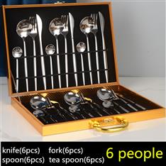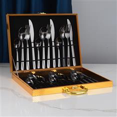 【木盒餐具】YMX-1012 韩式系列 24件套 木盒不锈钢黑色餐具套装