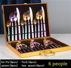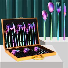 【木盒餐具】YMX-1012 韩式系列 24件套 木盒不锈钢幻彩色餐具套装