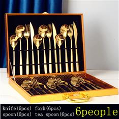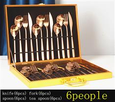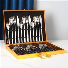 【木盒餐具】YMX-1012 韩式系列 24件套 木盒不锈钢金色餐具套装