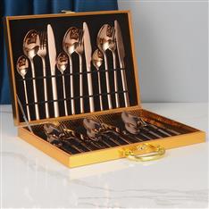 【木盒餐具】YMX-1017 骑士系列24件套不锈钢玫瑰金色餐具套装
